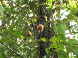 I am terrible at placing pictures (you can thank Joe for all the nice photos we usually have). Notice the healthy poison ivy vines on the trees. Always keep an eye out for things like that when foraging. I avoided them but came in with at least 75 chigger bites (25 of which are around my left ankle), trying to get good photos of persimmons and maypops (the next in the series).